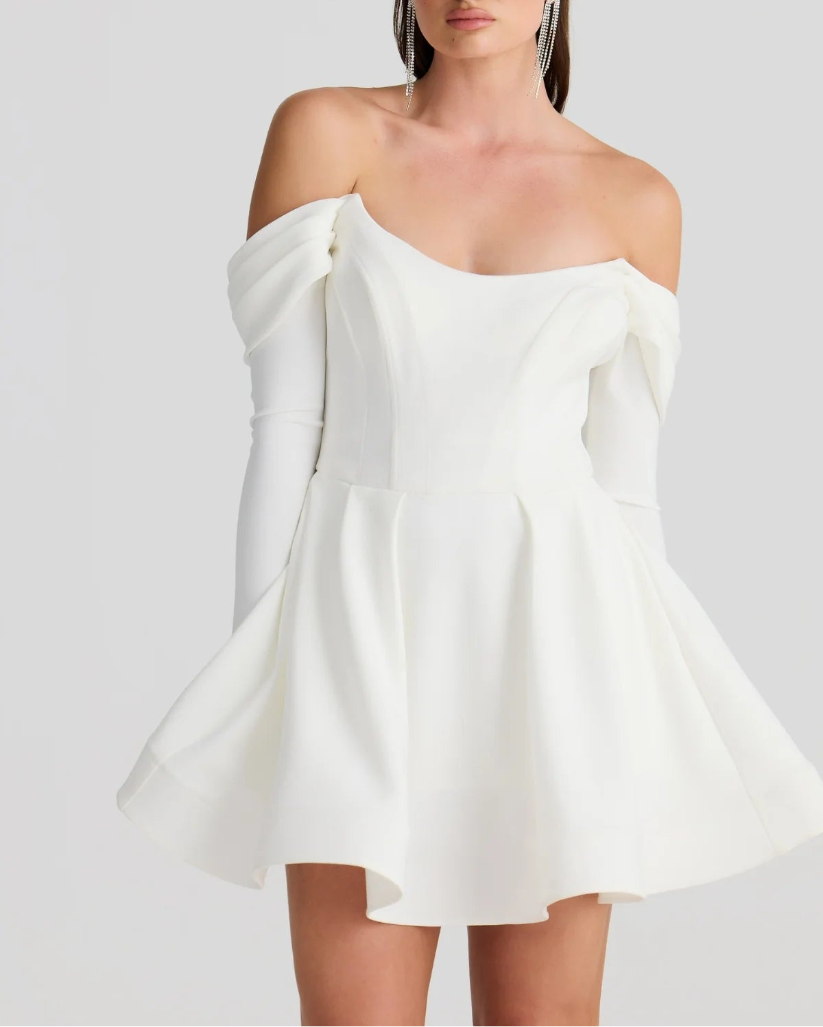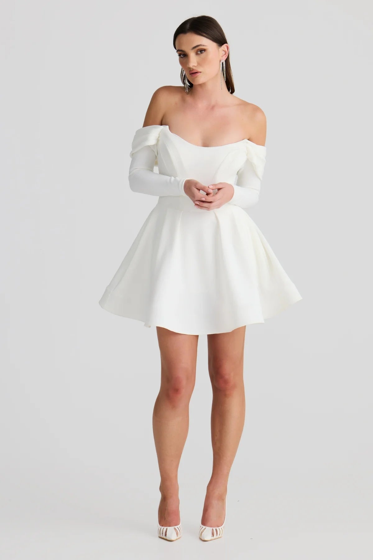 The Pandora Mini silhouette is designed to sculpt and accentuate. Constructed in our premium medium weight and extreme stretch bonded crepe fabrication, the mini features a pointed boned corset with built in bra cups for extra support, a-line silhouette with a crinoline hemline and functional pockets. Style with your favourite sheer or lace stockings this winter season.