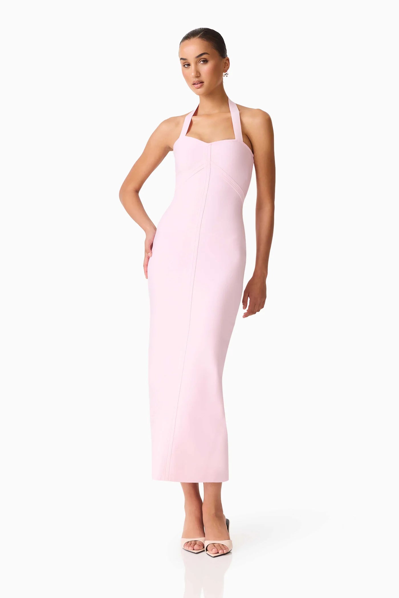 Ideal for formal events, evening occasions, or any setting that requires refined elegance, the Marla Halter Gown in Pink Halter Neck combines minimalist design with functional construction. Every element, from the halter neckline to the fitted silhouette, has been designed to create a polished and flattering fit. The double knit fabrication ensures durability, comfort, and subtle stretch, allowing the gown to move with the wearer while maintaining its shape.
