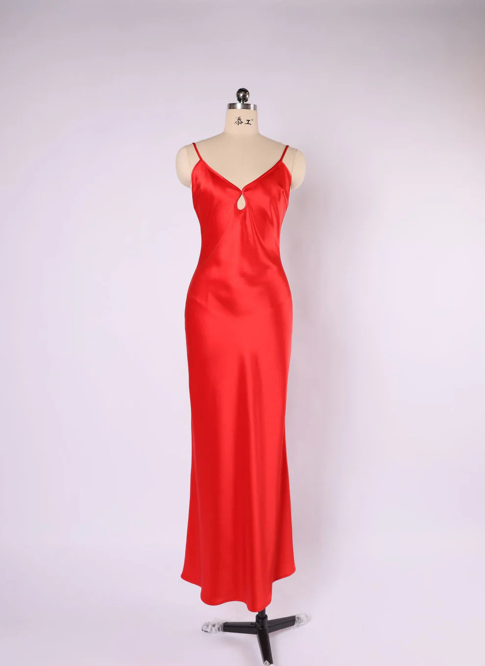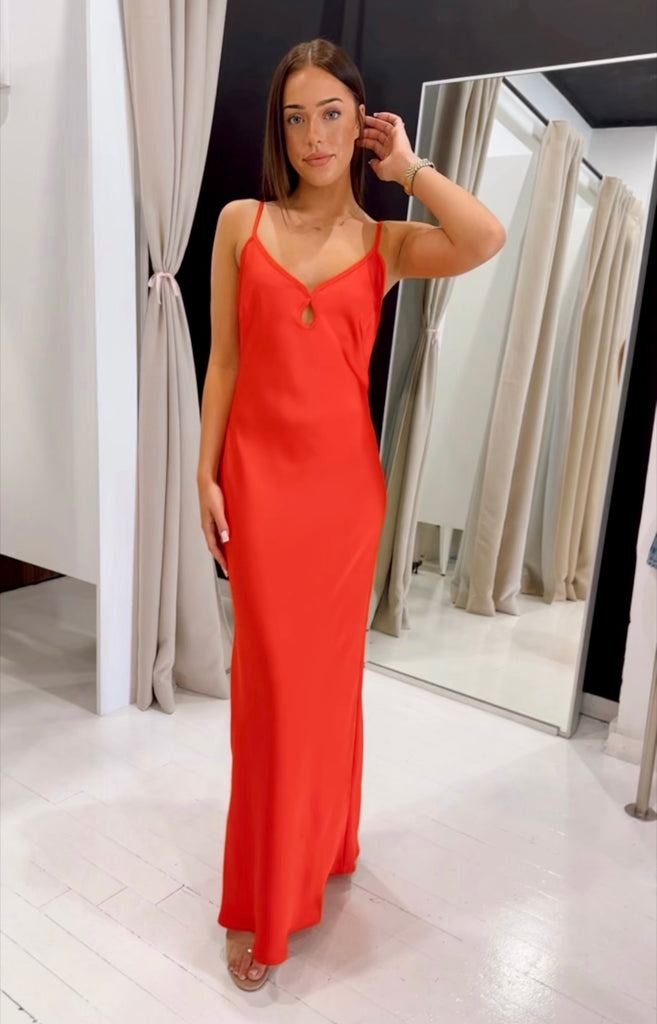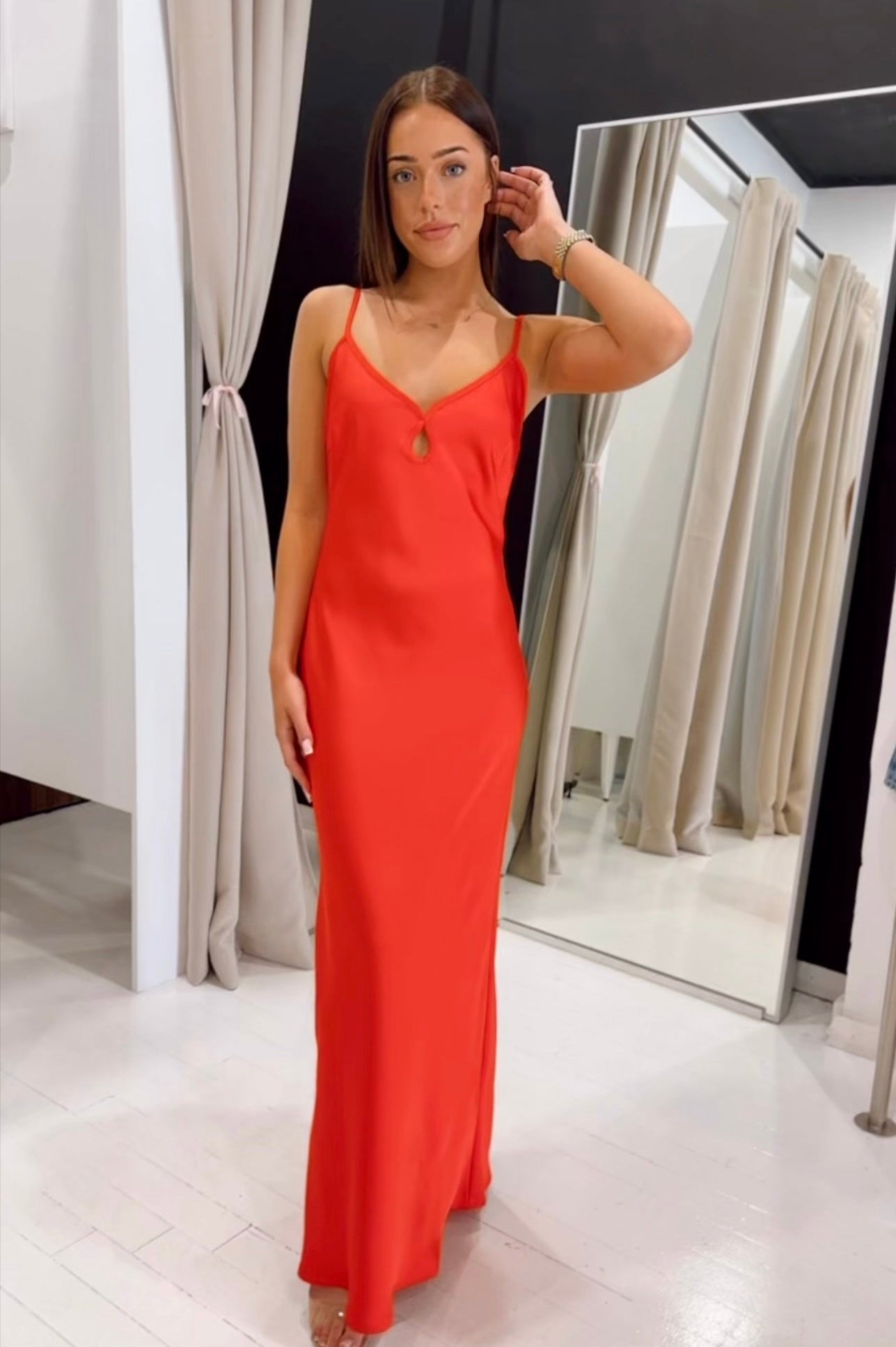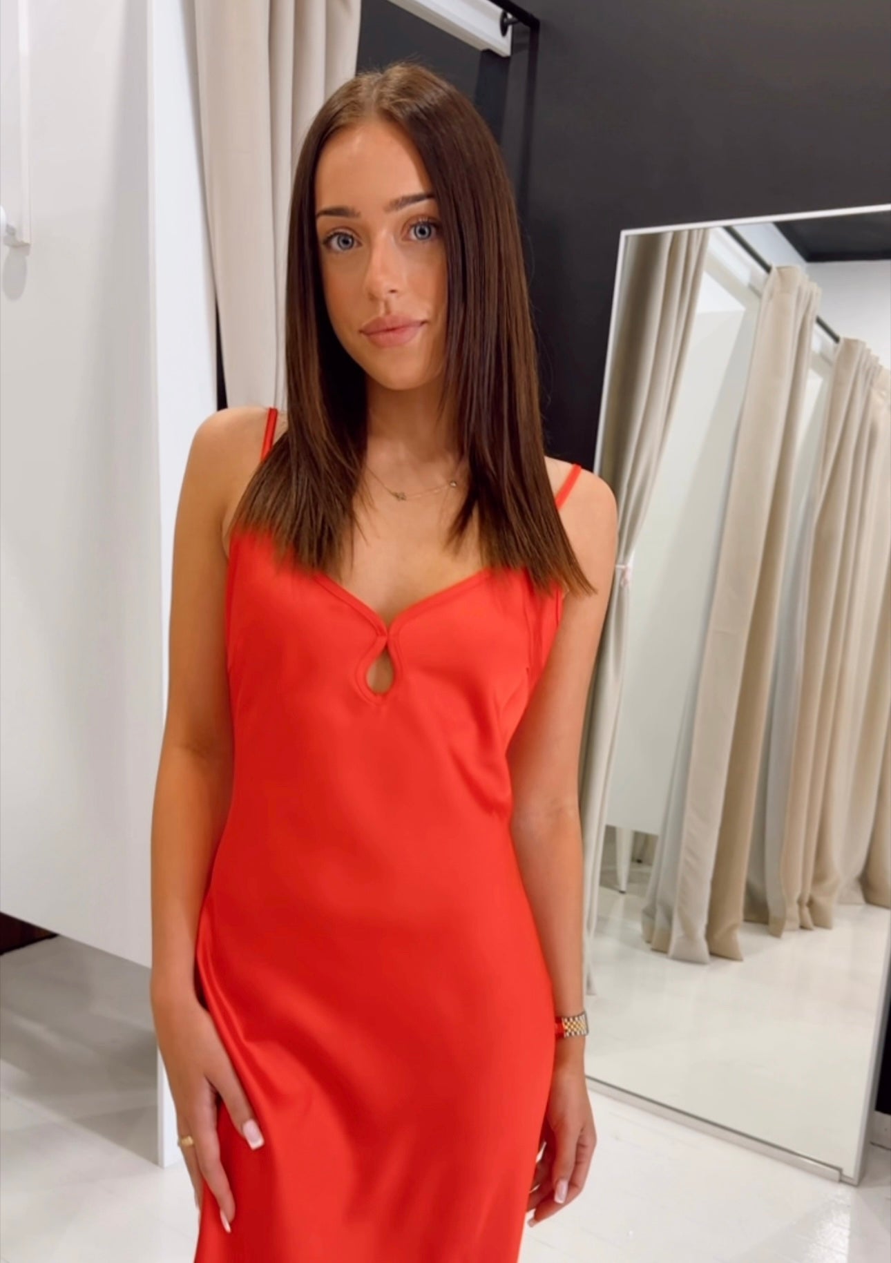 Slip into festive elegance with this stunning red slip dress, your new go-to for Christmas celebrations. Featuring adjustable straps for the perfect fit and a cheeky keyhole detail at the back, it's designed to turn heads at every holiday gathering. The sleek silhouette flatters all figures while the rich red hue captures the spirit of the season. Whether you're heading to a formal dinner or a casual cocktail party, this versatile dress delivers effortless glamour. Get ready to sparkle and shine—Christmas just got a whole lot more fabulous!
