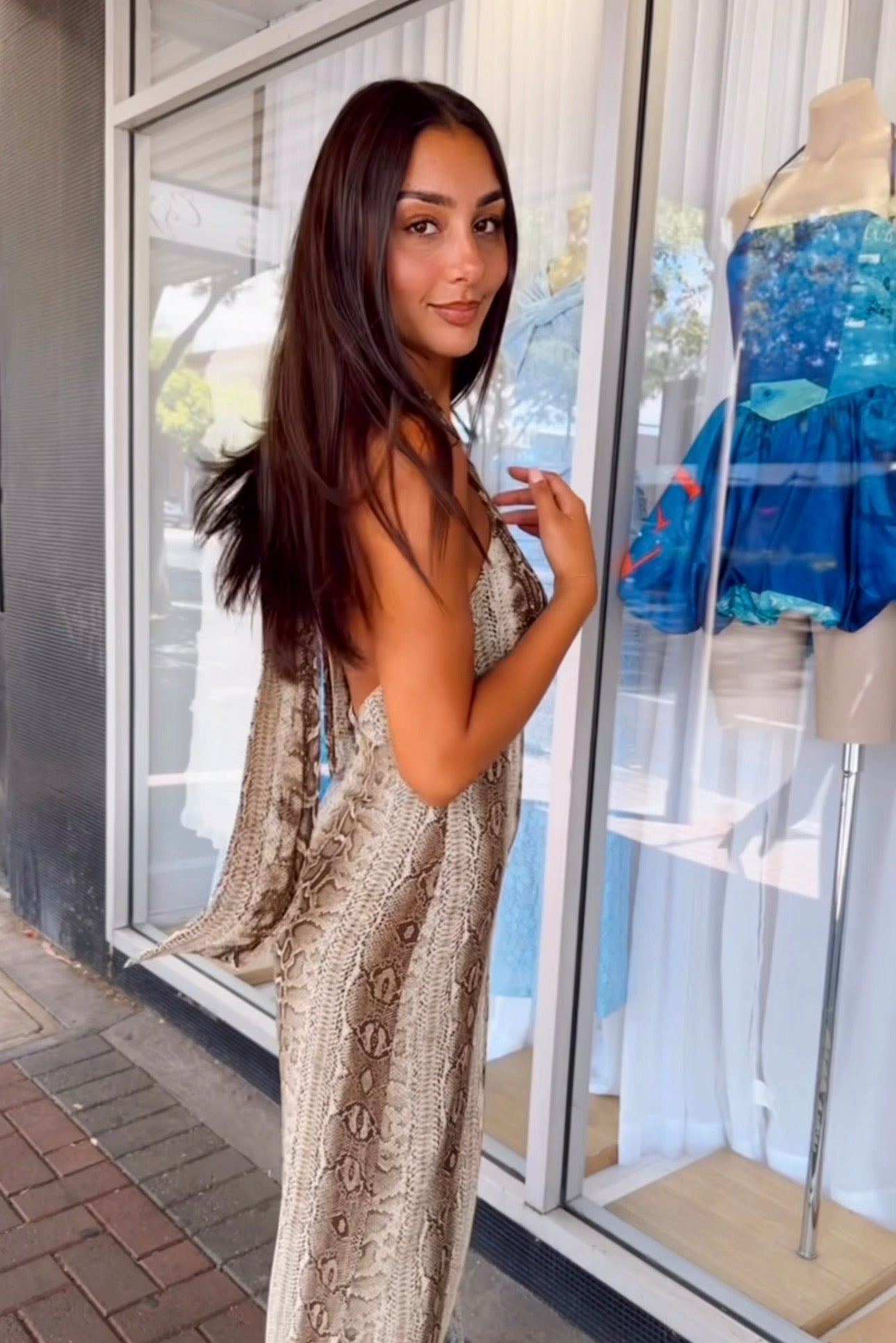 Make a bold statement with the Saskia Halter Dress in bronze. Featuring an adjustable wrap-around neck tie to suit all shapes. Saskia embraces originality in our exquisite embossed metallic satin fabrication. Perfect for bridesmaid dresses or your next black tie event.