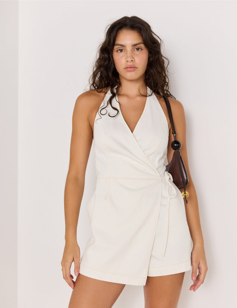 Cute shorts wrap halter playsuit