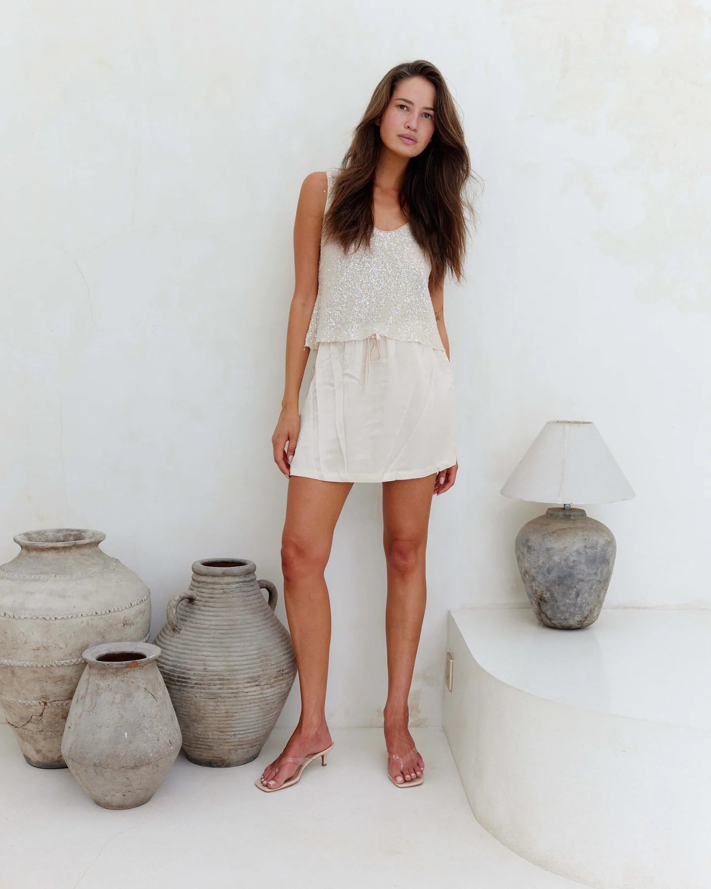 The ASTA MINI is your go-to piece for effortless elegance. Crafted in luxurious pearl satin, this drawstring mini skirt offers a flattering silhouette with adjustable comfort. Perfect for dressing up or down, it's the versatile essential that transitions seamlessly from day to night. Slip it on and feel instantly polished.