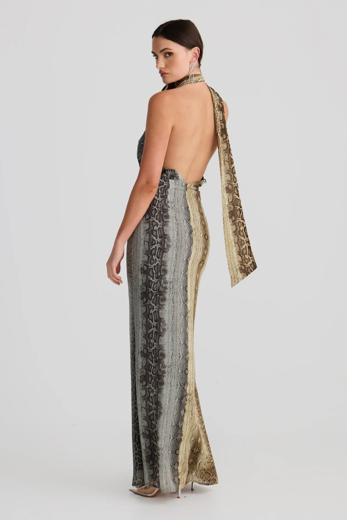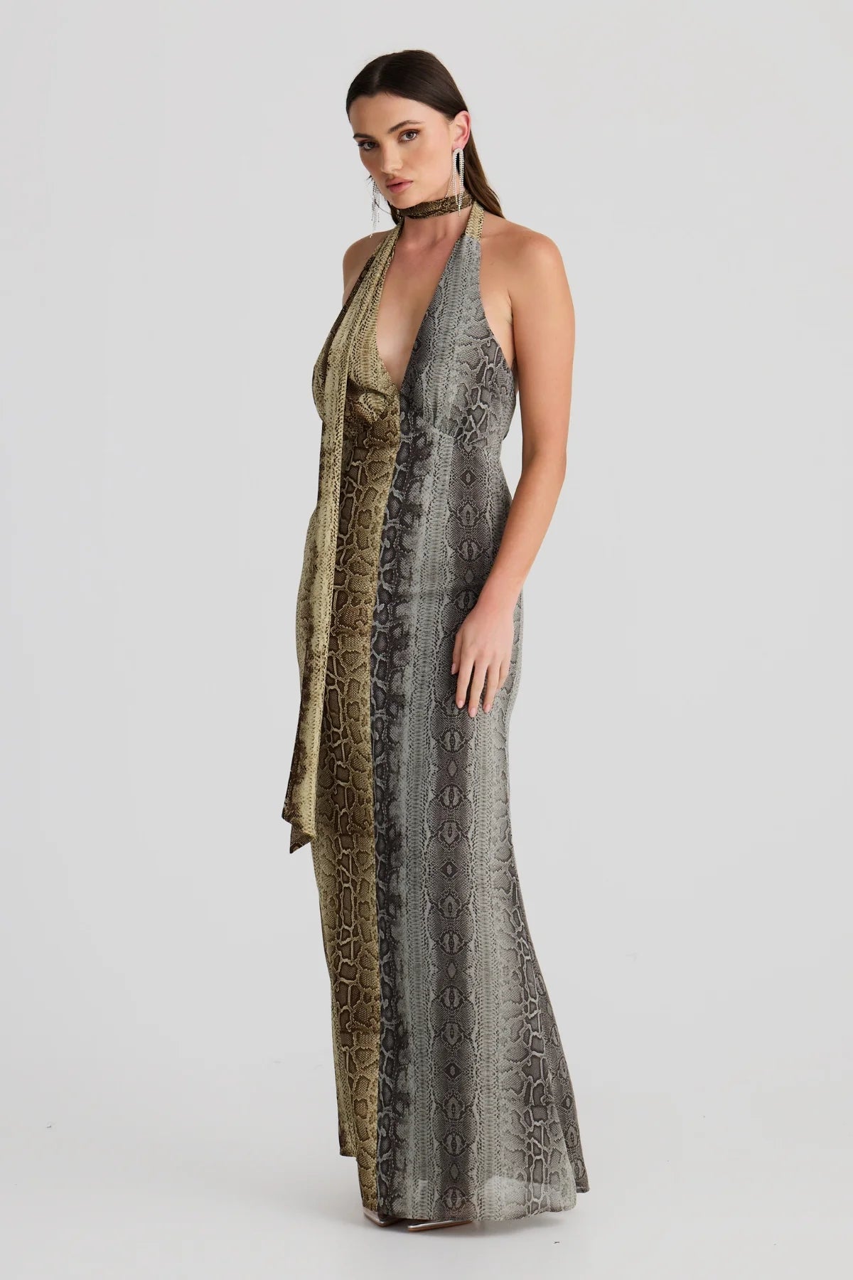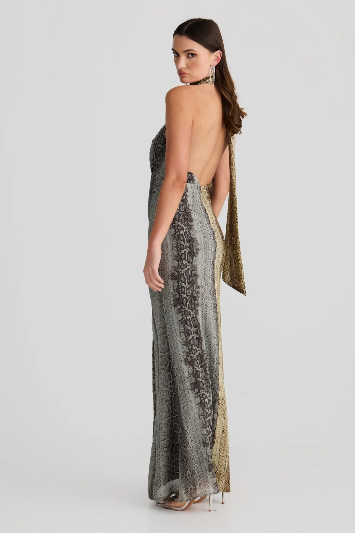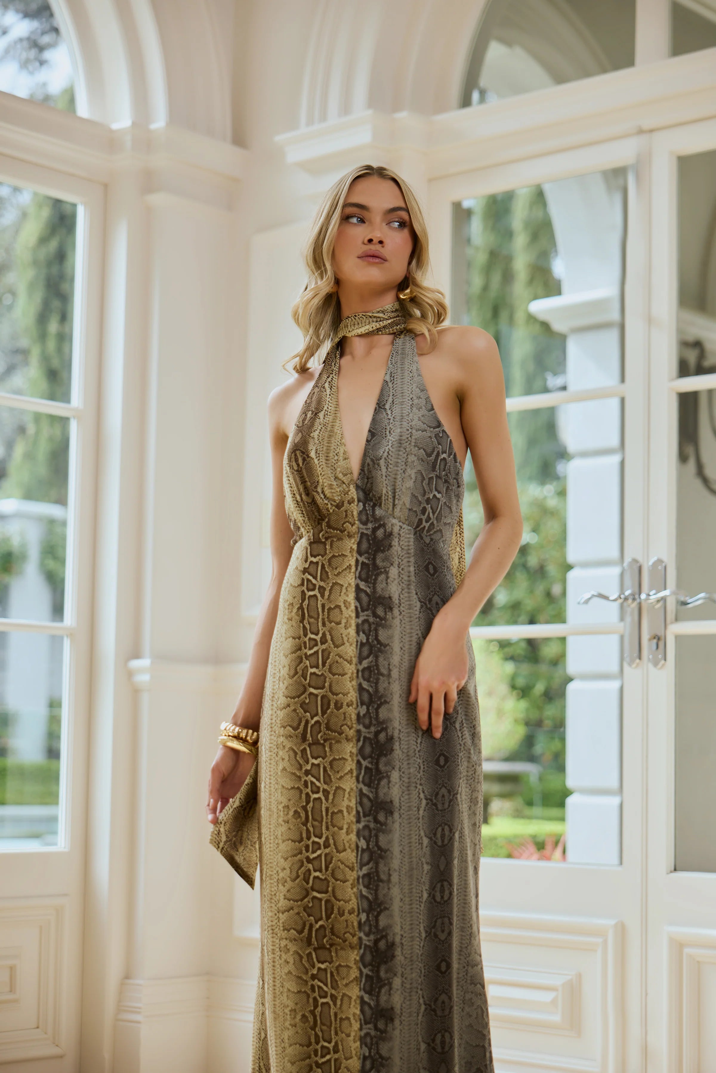 Make a bold statement with the Saskia Halter Dress in bronze. Featuring an adjustable wrap-around neck tie to suit all shapes. Saskia embraces originality in our exquisite embossed metallic satin fabrication. Perfect for bridesmaid dresses or your next black tie event.