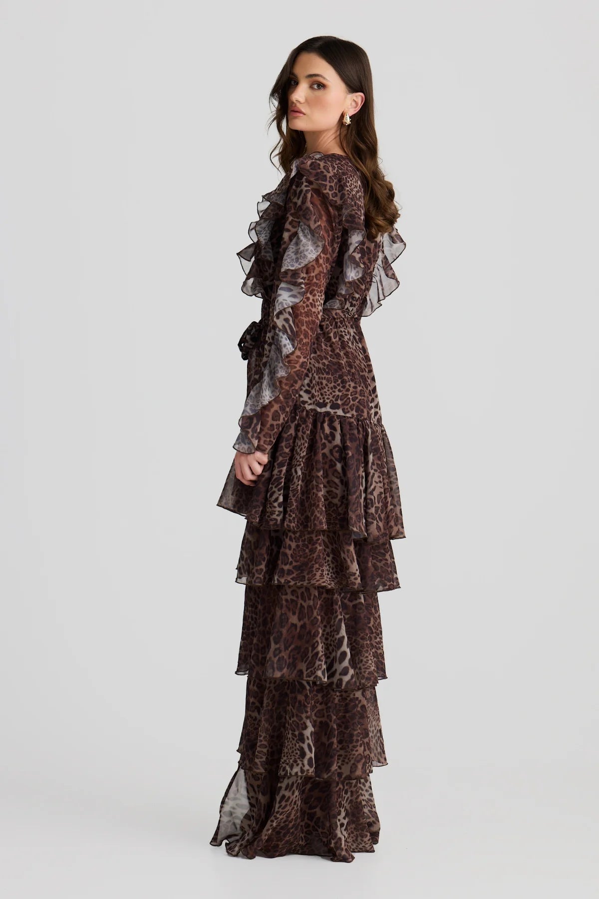 Embrace your free spirit with the Solana floaty chiffon Dress. Featuring this season's subtle leopard print that dances with every movement. The layered ruffles with a high-low design bring edge to a bohemian flare. Ideal for warm-weather adventures or layered with boots in winter, this dress is a must-have for your wardrobe.