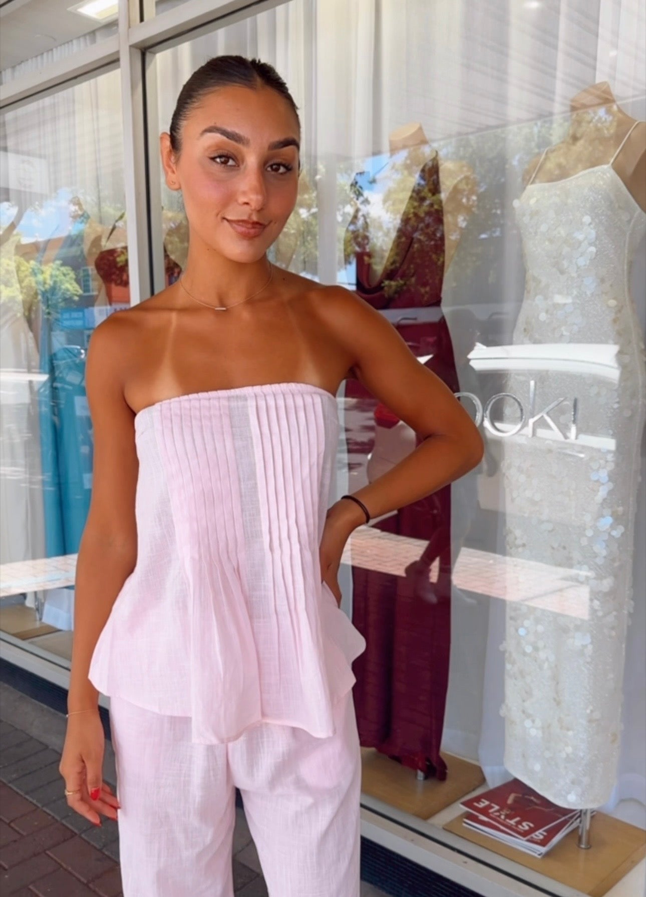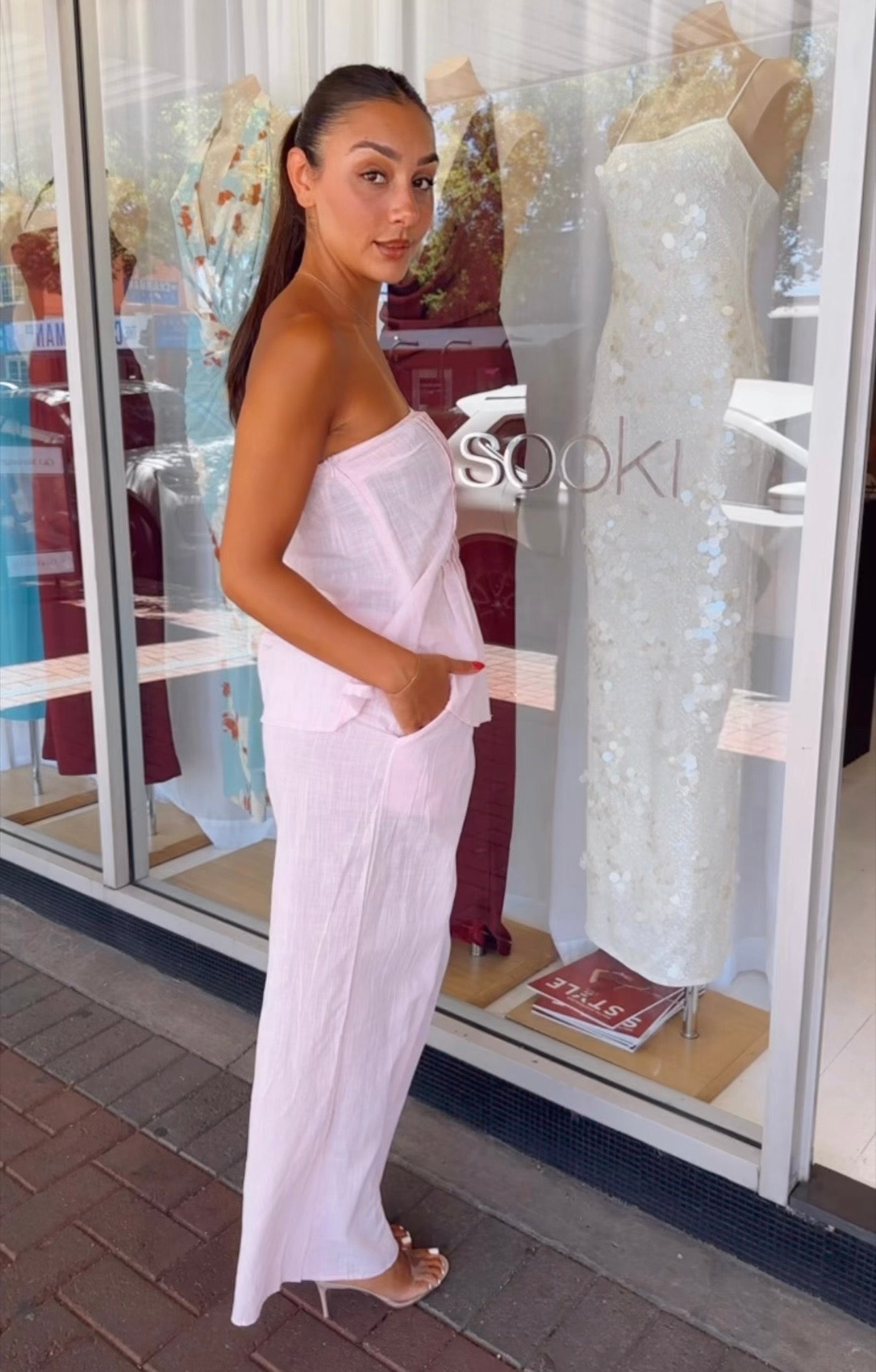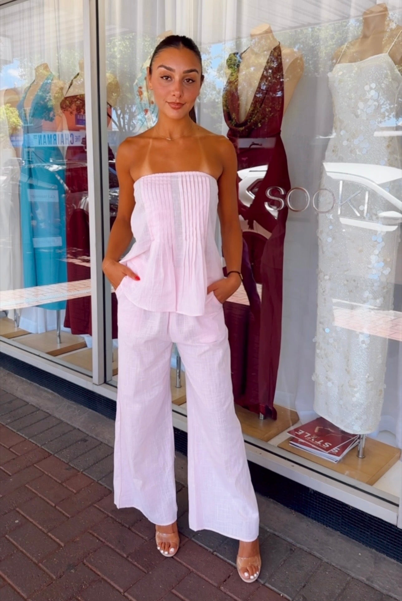 Elevate your casual game with the Jianni Pant Set—a strapless pleated top paired with relaxed-fit pants that scream effortless style. The playful pleated detail adds movement and dimension, while the sassy silhouette keeps things fun and flirty. Practical side pockets mean you can ditch the bag (or keep your essentials close), and the laid-back fit works for everything from weekend brunches to spontaneous adventures. Comfort meets attitude in this must-have two-piece.