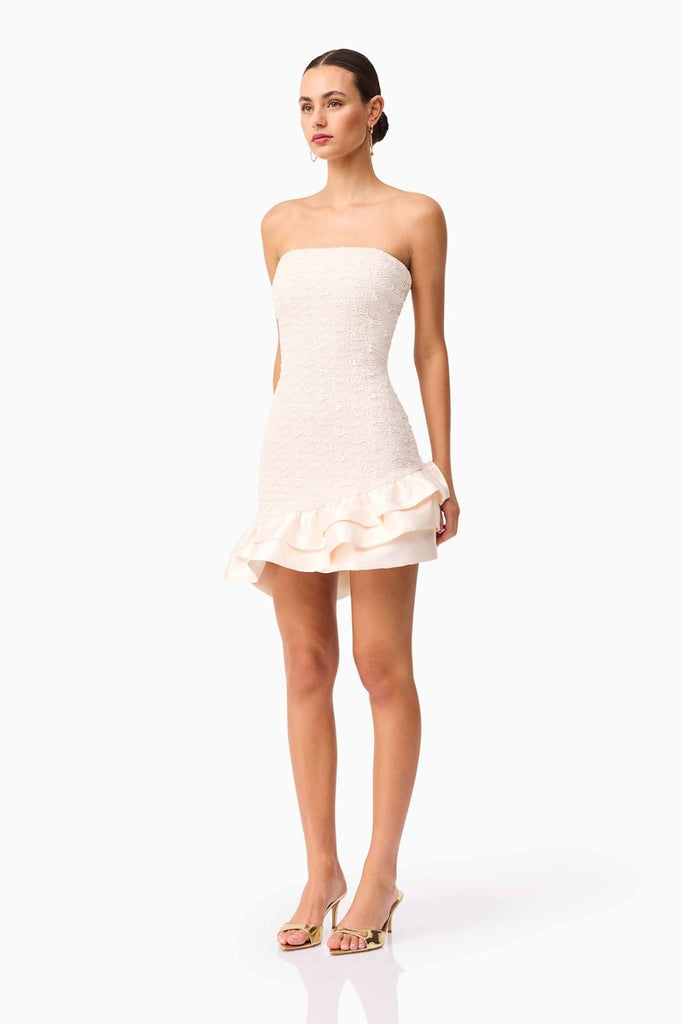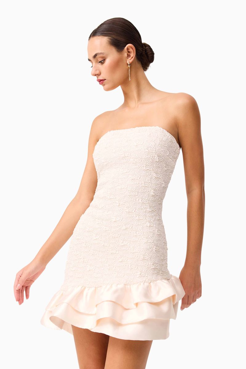 Crafted from a luxurious textured satin fabrication, the gown is cut in a slim fit that contours the silhouette with clean precision. Thanks to the fabric's gentle stretch, it offers both structure and comfort for all-night wear.